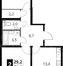 61,4 м²