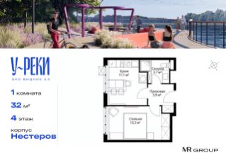 Продаётся 1-к квартира общей площадью 32 м² с предчистовой отделкой в ЖК "У реки. Эко Видное 2.0" на 4-м этаже корпуса Нестеров.