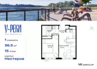 Продаётся 1-комнатная квартира общей площадью 36.50 м² с предчистовой отделкой в ЖК "У реки. Эко Видное 2.0" на 15-м этаже корпуса Нестеров.
