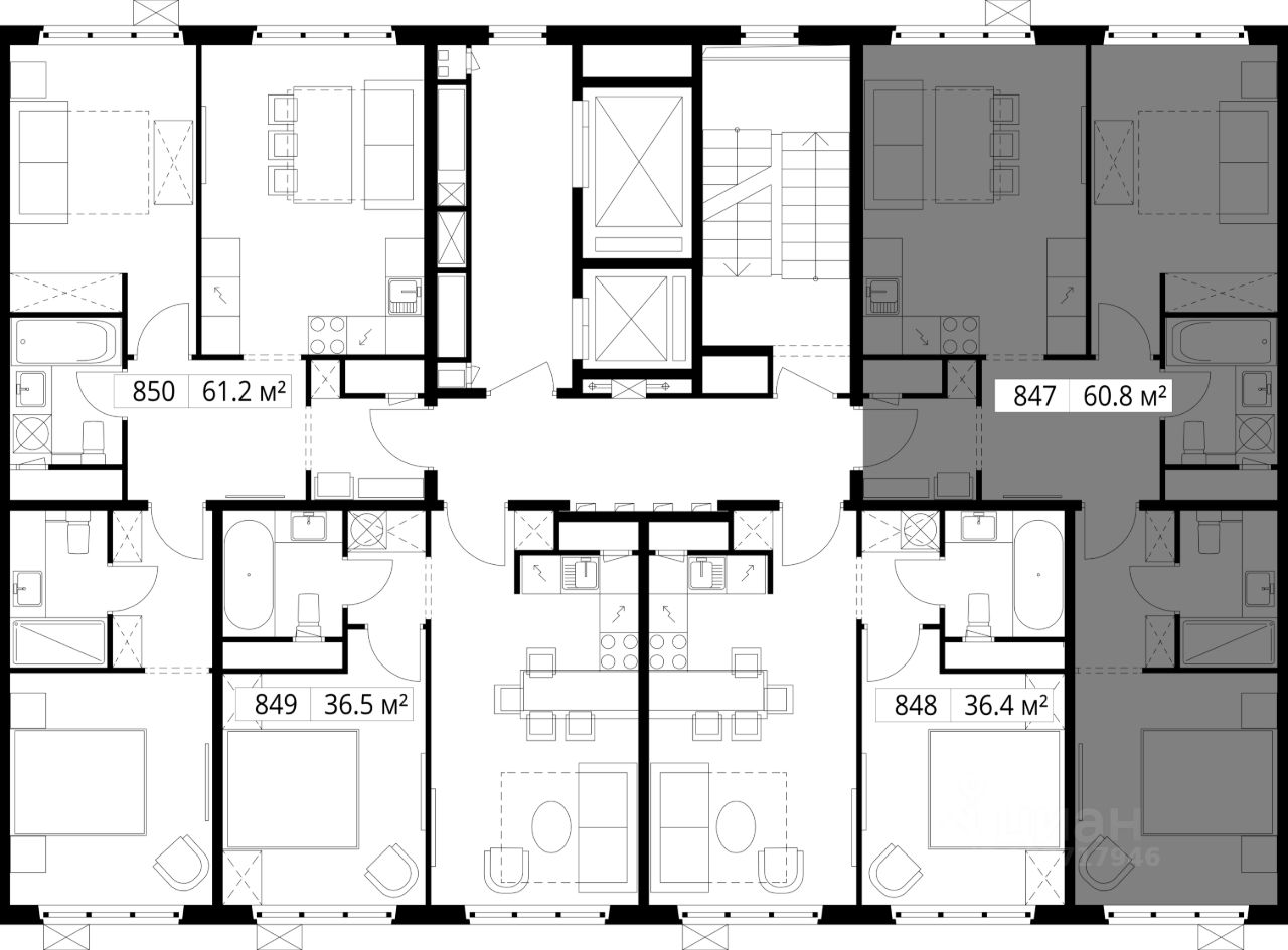 Продаётся 2-комнатная квартира общей площадью 60.80 м² с предчистовой отделкой в ЖК "У реки. Эко Видное 2.0" на 14-м этаже корпуса Нестеров.
