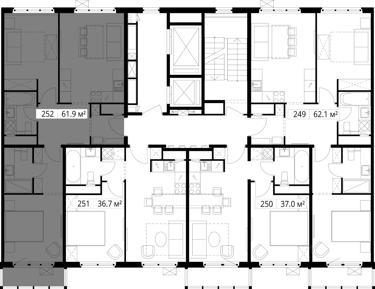Продаётся 2-комнатная квартира общей площадью 61.90 м² с предчистовой отделкой в ЖК "У реки. Эко Видное 2.0" на 16-м этаже корпуса Нестеров.