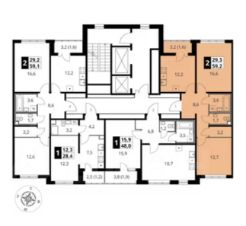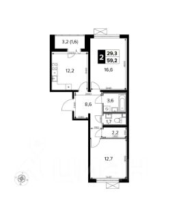 Площадь квартиры — 59,4 кв. м, из которых кухня — целых 12,2 кв. м, а жилая часть занимает 29,3 кв. м. Планировка очень удобная: есть гардеробная, просторная кухня, уютная лоджия, два санузла — совмещенный и отдельный. Окна выходят и во двор, и на улицу, поэтому в квартире всегда много света.