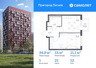 Строим кварталы для жизни с заботой о будущем. Предлагается 1-комнатная квартира комфорт-класса 34,87 кв.м в корпусе 21 на 12 этаже, в ЖК "Пригород Лесное"