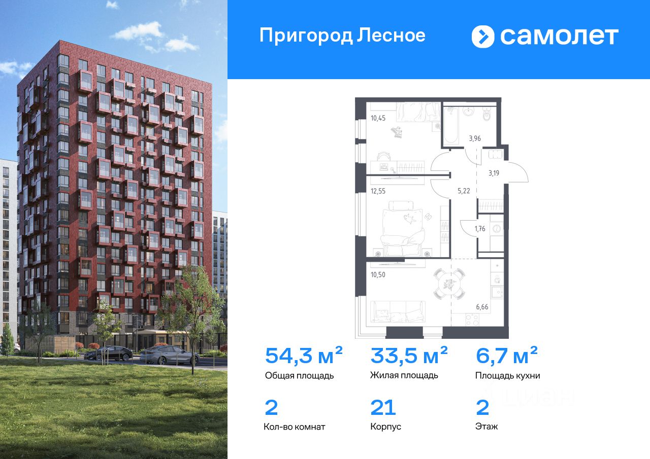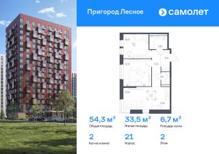 Строим кварталы для жизни с заботой о будущем. Предлагается 2-комнатная квартира комфорт-класса 54,29 кв.м в корпусе 21 на 2 этаже, в ЖК "Пригород Лесное"