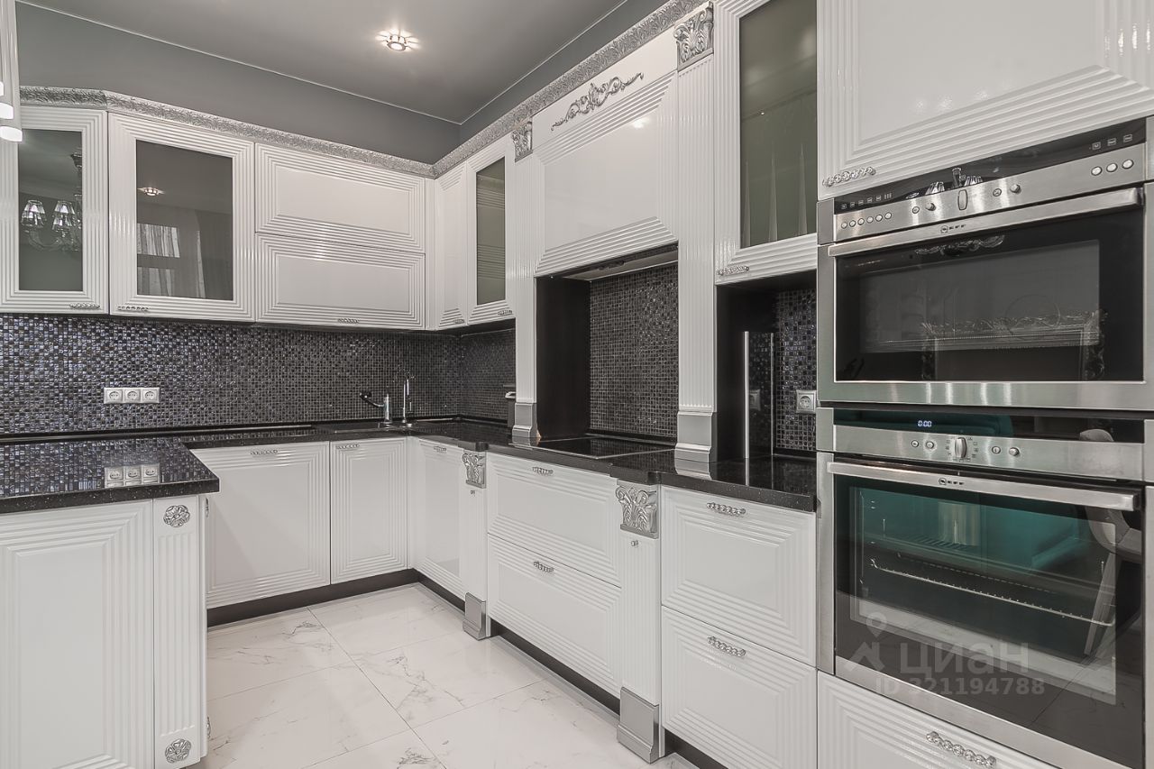 В квартире выполнен качественный ремонт из дорогих отделочных материалов, на кухне установлен кухонный гарнитур со встроенной бытовой техникой (духовой шкаф, варочная панель, вытяжка, микроволновая печь, холодильник, посудомоечная машина).