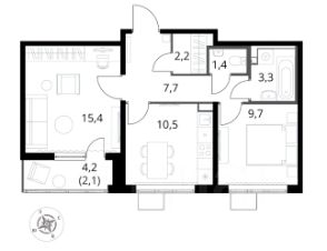 Квартира: 2 изолированные комнаты, просторная кухня правильной формы, гардероб в прихожей, раздельный санузел. В квартире выполнен подчистовой ремонт: разведена электрика, отштукатуренные стены, санузел в плитке с установленными сантехприборами, остаётся постелить пол, поклеить обои и натяжной потолок.
