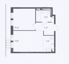 Размеры комнат: 13,87 и 17,21 (комната + кухня)