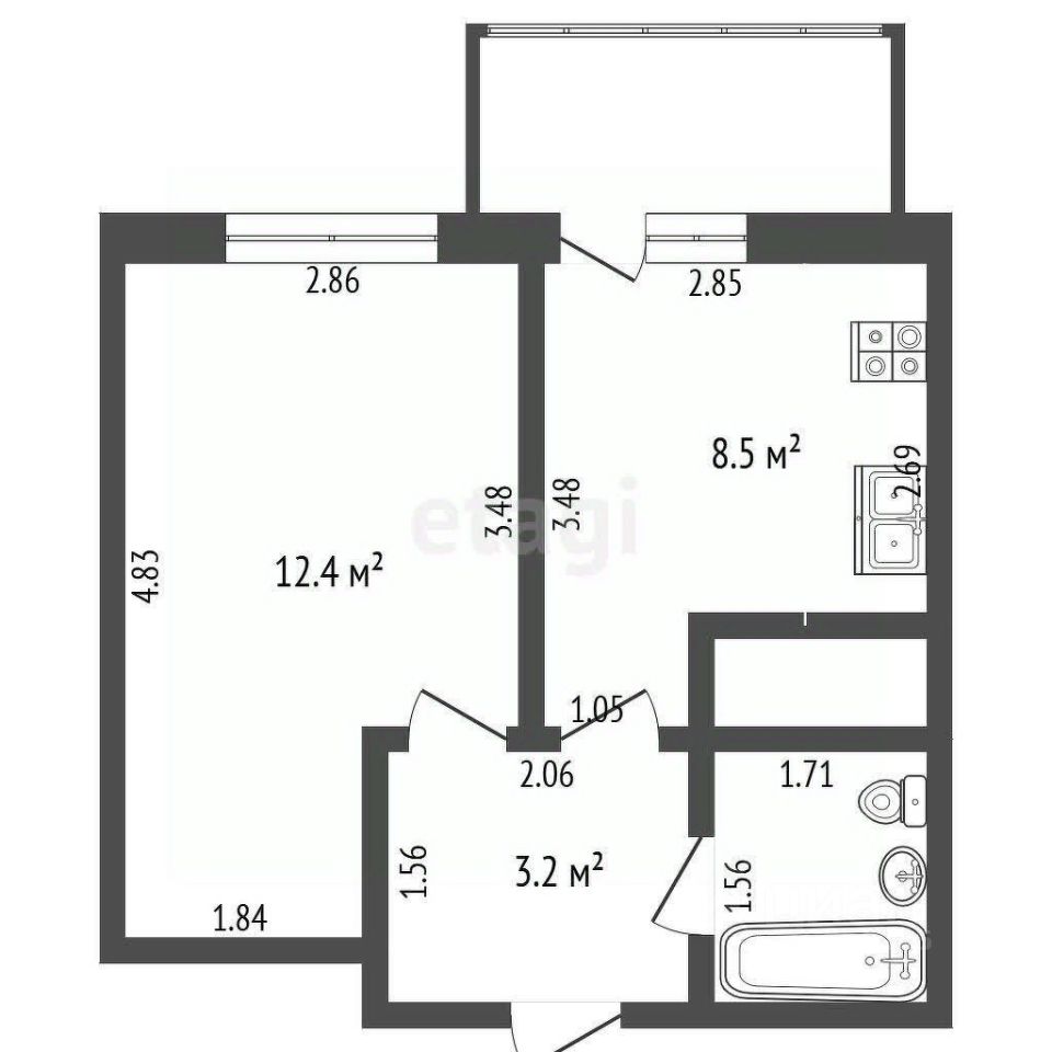 Однокомнатная квартира с балконом в современном жилом комплексе предлагает отличную возможность для реализации индивидуального дизайнерского ремонта.