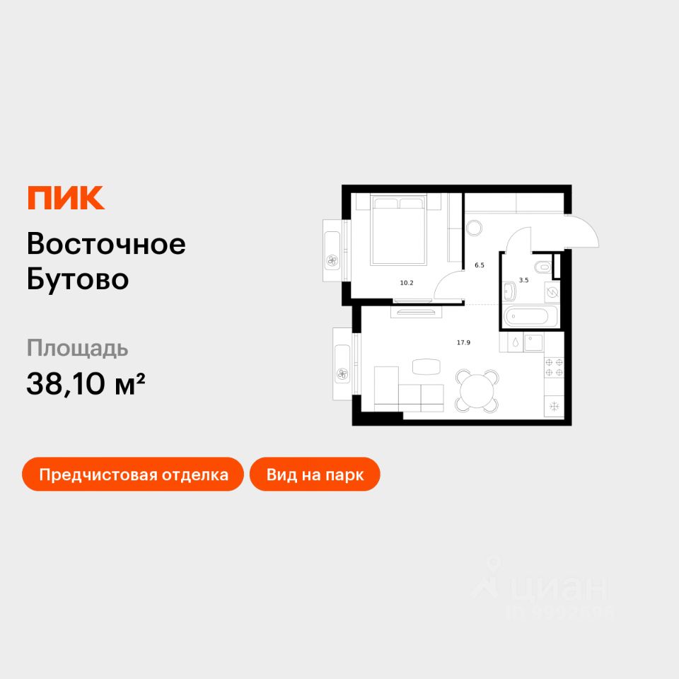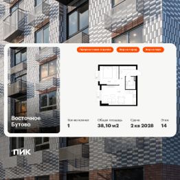 Продаётся 1-комн. квартира площадью 38,1 кв.м на 14 этаже 15 этажного дома (Корпус 47, Секция 2) проекта ПИК Восточное Бутово. Светлый просторный подъезд на уровне земли, функциональная планировка, большие окна, предчистовая отделка.
