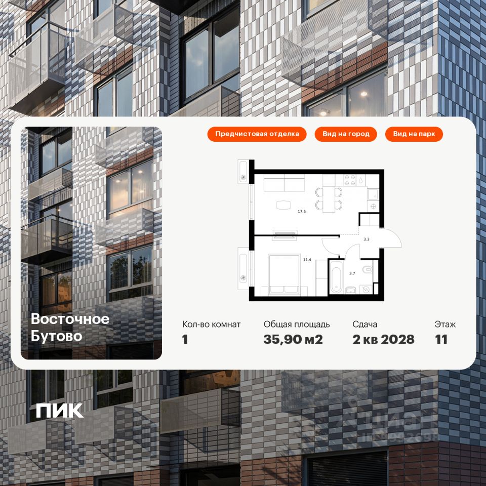 Продаётся 1-комн. квартира площадью 35,9 кв.м на 11 этаже 25 этажного дома (Корпус 48, Секция 4) проекта ПИК Восточное Бутово. Светлый просторный подъезд на уровне земли, функциональная планировка, большие окна, предчистовая отделка.