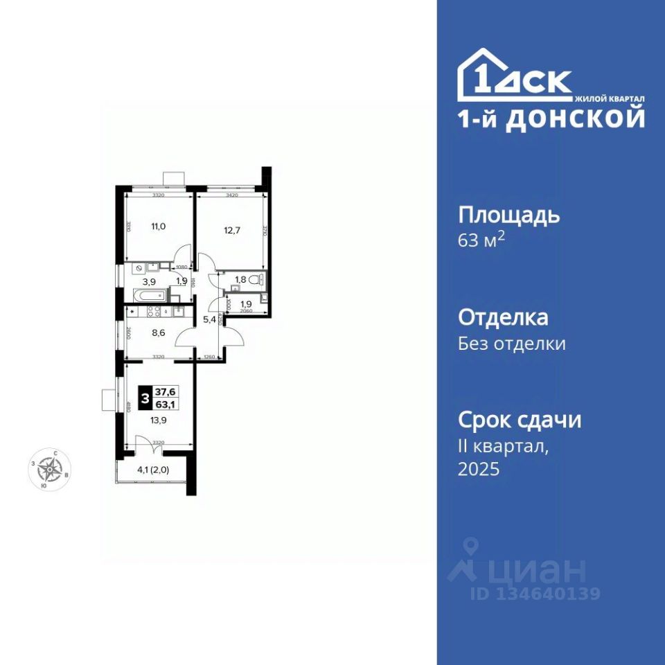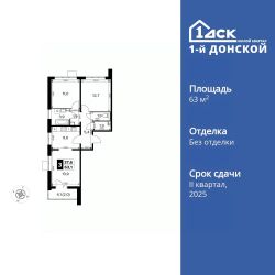 Продаётся 3-к квартира номер 28 общей площадью 63.1 кв.м. на 8-м этаже 9 этажного здания. Отделка Whitebox. Цена с учётом скидки.