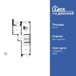 Продаётся 2-к квартира номер 5 общей площадью 59.5 кв.м. на 3-м этаже 9 этажного здания. Отделка Whitebox. Цена с учётом скидки.