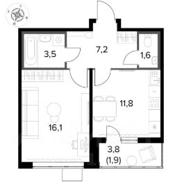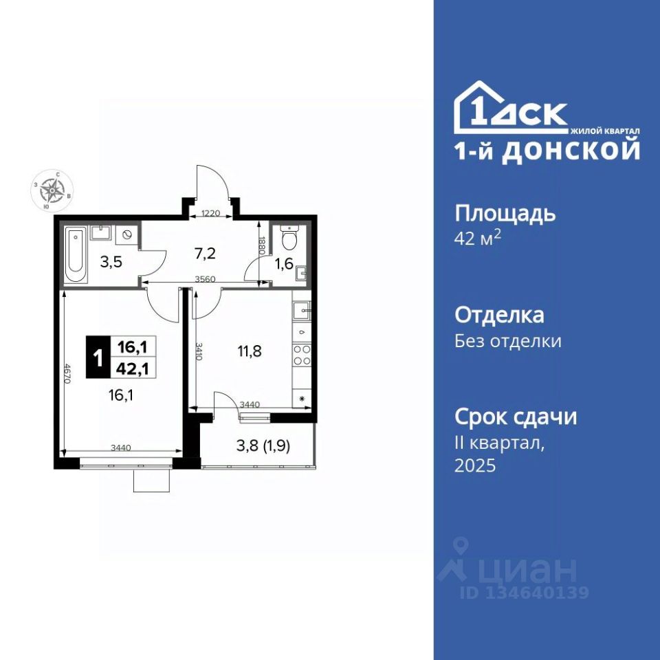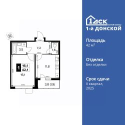 Продаётся 1-к квартира номер 63 общей площадью 42.1 кв.м. на 9-м этаже 14 этажного здания. Отделка Whitebox. Цена с учётом скидки.