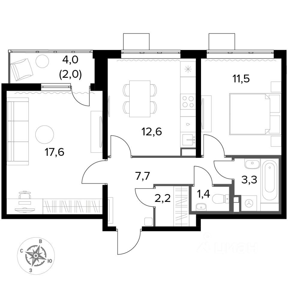 Продаётся 2-к квартира номер 183 общей площадью 58.3 кв.м. на 4-м этаже 24 этажного дома. Чистовая отделка. Цена с учётом скидки!