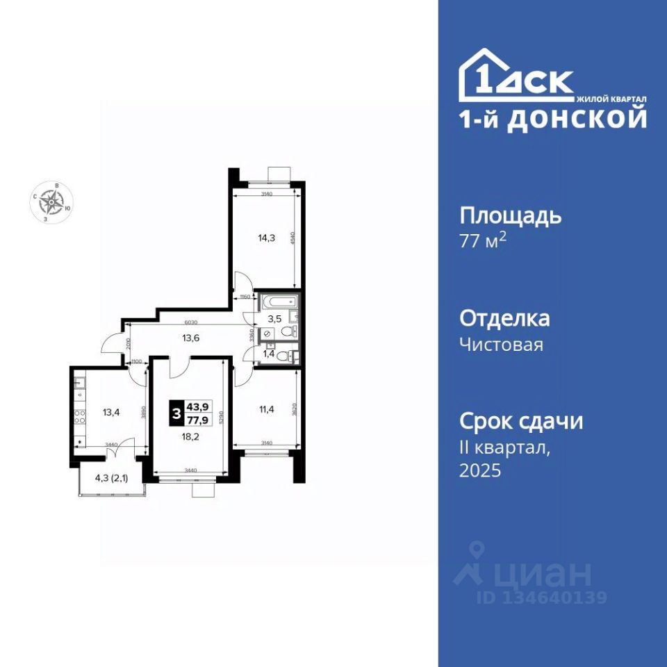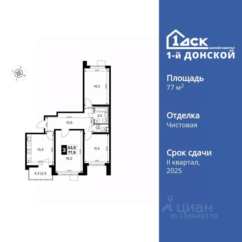 Продаётся 3-к квартира номер 247 общей площадью 77.9 кв.м. на 13-м этаже 24 этажного здания. Чистовая отделка. Цена с учётом скидки.