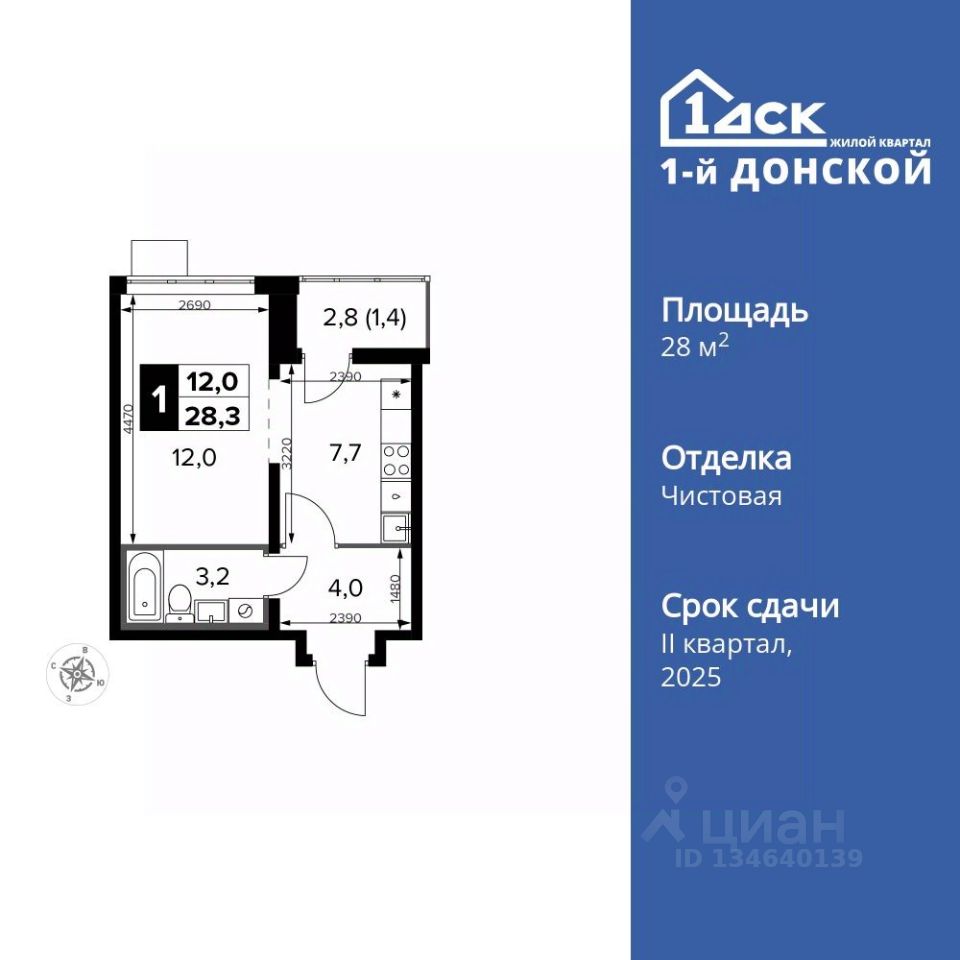 Продаётся 1-к квартира номер 273 общей площадью 28.3 кв.м. на 17-м этаже 24 этажного дома. Чистовая отделка. Цена с учётом скидки!