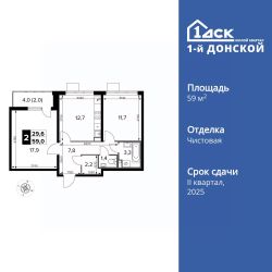 Продаётся 2-к квартира номер 288 общей площадью 59 кв.м. на 19-м этаже 24 этажного здания. Чистовая отделка. Цена с учётом скидки.