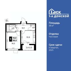 Продаётся 1-к квартира номер 305 общей площадью 38 кв.м. на 22-м этаже 24 этажного здания. Чистовая отделка. Цена с учётом скидки.