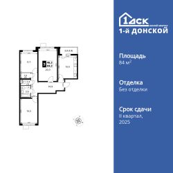 Продаётся 3-к квартира номер 411 общей площадью 84.3 кв.м. на 14-м этаже 24 этажного здания. Отделка Whitebox. Цена с учётом скидки.