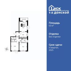 Продаётся 3-к квартира номер 443 общей площадью 63.2 кв.м. на 18-м этаже 24 этажного здания. Отделка Whitebox. Цена с учётом скидки.
