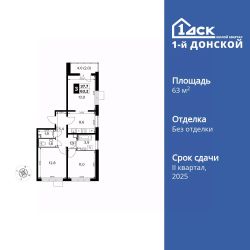 Продаётся 3-к квартира номер 464 общей площадью 63.2 кв.м. на 21-м этаже 24 этажного дома. Отделка Whitebox. Цена с учётом скидки!