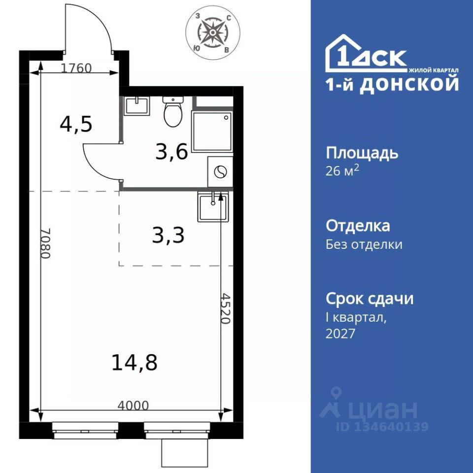 Продаётся квартира-студия номер 1 общей площадью 26.2 кв.м. на 2-м этаже 24 этажного здания. Без отделки. Цена с учётом скидки.