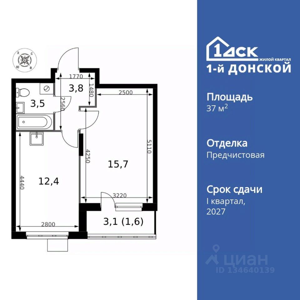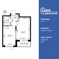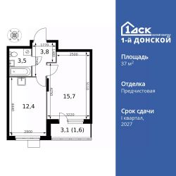 Продаётся 1-к квартира номер 11 общей площадью 37 кв.м. на 2-м этаже 24 этажного здания. Отделка Whitebox.