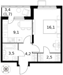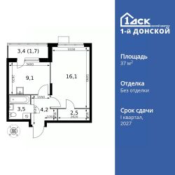 Продаётся 1-к квартира номер 5 общей площадью 37.1 кв.м. на 2-м этаже 24 этажного здания. Без отделки.