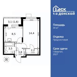 Продаётся 1-к квартира номер 95 общей площадью 34 кв.м. на 10-м этаже 24 этажного здания. Отделка Whitebox.