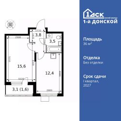 Продаётся 1-к квартира номер 109 общей площадью 36.9 кв.м. на 11-м этаже 24 этажного здания. Без отделки.