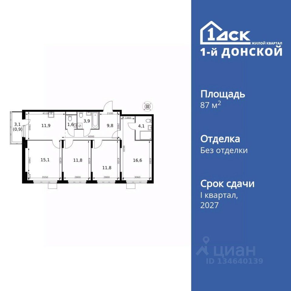 Продаётся 4-к квартира номер 167 общей площадью 87.5 кв.м. на 17-м этаже 24 этажного дома. Без отделки. Цена с учётом скидки!