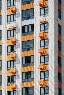 Секции-маяки формируют у зданий визуальную L-форму, что придает застройке структуру и ритмику объемов. На ощущение динамики работает и разная этажность зданий.