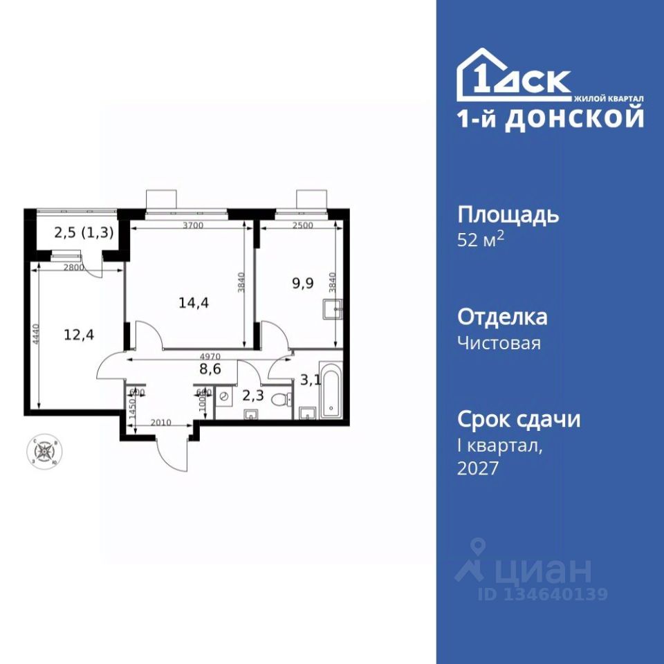 Продаётся 2-к квартира номер 510 общей площадью 52 кв.м. на 23-м этаже 24 этажного здания. Чистовая отделка.