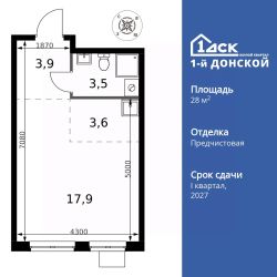 Продаётся квартира-студия номер 529 общей площадью 28.9 кв.м. на 24-м этаже 24 этажного здания. Отделка Whitebox.