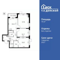 Продаётся 3-к квартира номер 535 общей площадью 76.7 кв.м. на 2-м этаже 24 этажного здания. Без отделки.