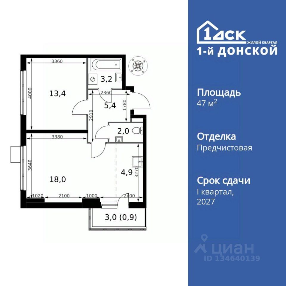 Продаётся 2-к квартира номер 539 общей площадью 47.8 кв.м. на 2-м этаже 24 этажного здания. Отделка Whitebox.
