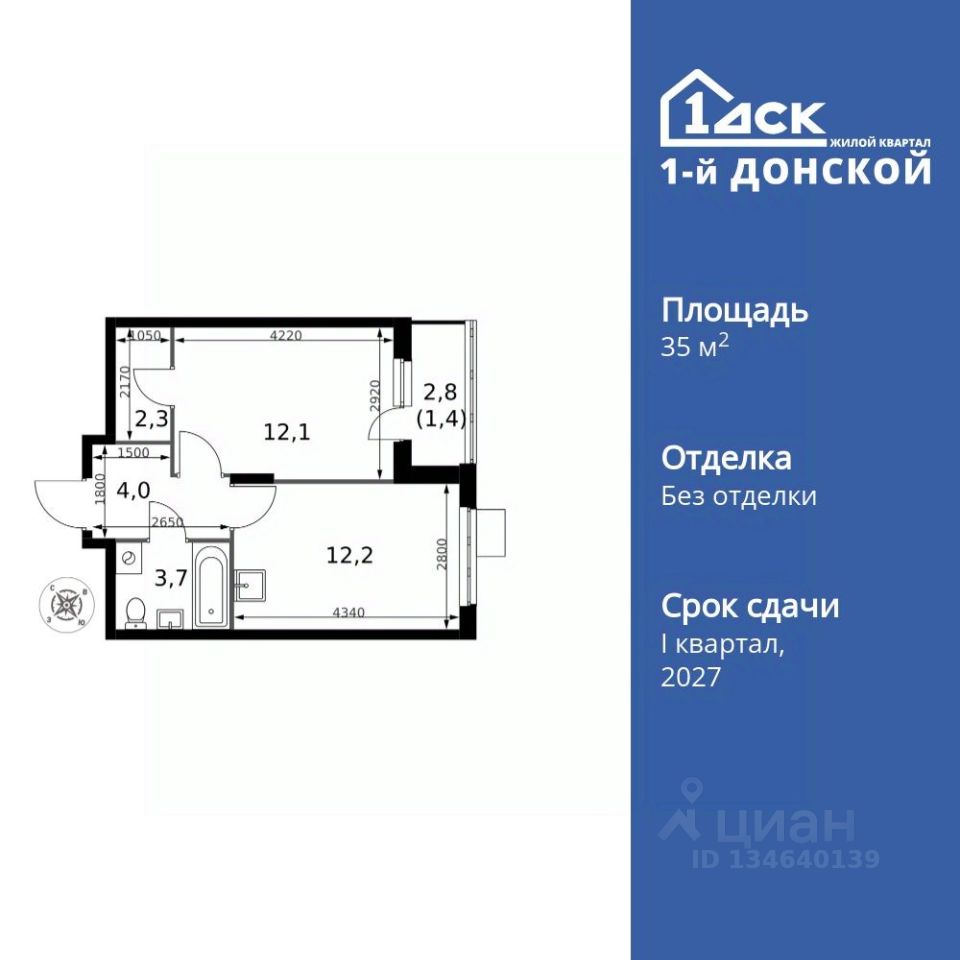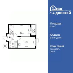 Продаётся 1-к квартира номер 691 общей площадью 35.7 кв.м. на 16-м этаже 24 этажного здания. Без отделки.