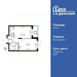 Продаётся 1-к квартира номер 614 общей площадью 35.7 кв.м. на 9-м этаже 24 этажного здания. Без отделки.