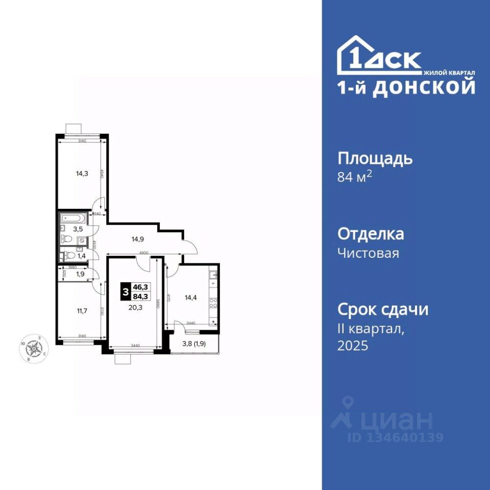 Продаётся 3-к квартира номер 104 общей площадью 84.3 кв.м. на 16-м этаже 24 этажного здания. Чистовая отделка. Цена с учётом скидки.