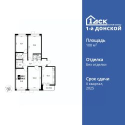 Продаётся 4-к квартира номер 184 общей площадью 108.2 кв.м. на 5-м этаже 24 этажного здания. Отделка Whitebox. Цена с учётом скидки.