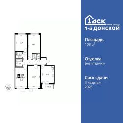Продаётся 4-к квартира номер 214 общей площадью 108.2 кв.м. на 10-м этаже 24 этажного здания. Отделка Whitebox. Цена с учётом скидки.