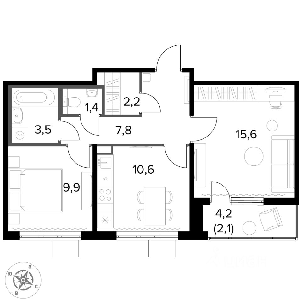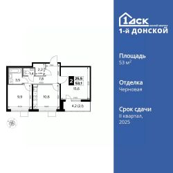 Продаётся 2-к квартира номер 218 общей площадью 53.1 кв.м. на 11-м этаже 24 этажного дома. Отделка Whitebox. Цена с учётом скидки!