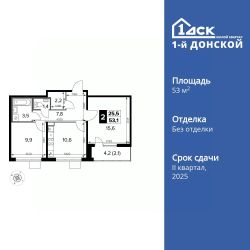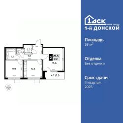 Продаётся 2-к квартира номер 218 общей площадью 53.1 кв.м. на 11-м этаже 24 этажного здания. Отделка Whitebox. Цена с учётом скидки.