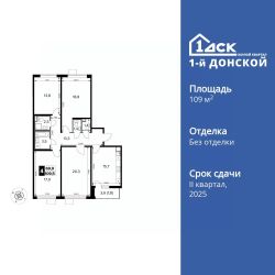 Продаётся 4-к квартира номер 226 общей площадью 109.5 кв.м. на 12-м этаже 24 этажного здания. Отделка Whitebox. Цена с учётом скидки.