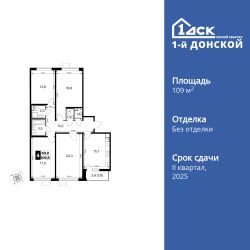 Продаётся 4-к квартира номер 274 общей площадью 109.5 кв.м. на 20-м этаже 24 этажного здания. Отделка Whitebox. Цена с учётом скидки.