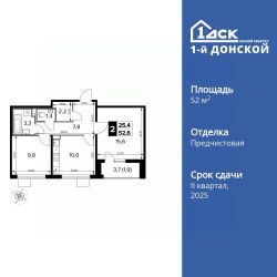 Продаётся 2-к квартира номер 374 общей площадью 52.6 кв.м. на 20-м этаже 24 этажного дома. Отделка Whitebox. Цена с учётом скидки!