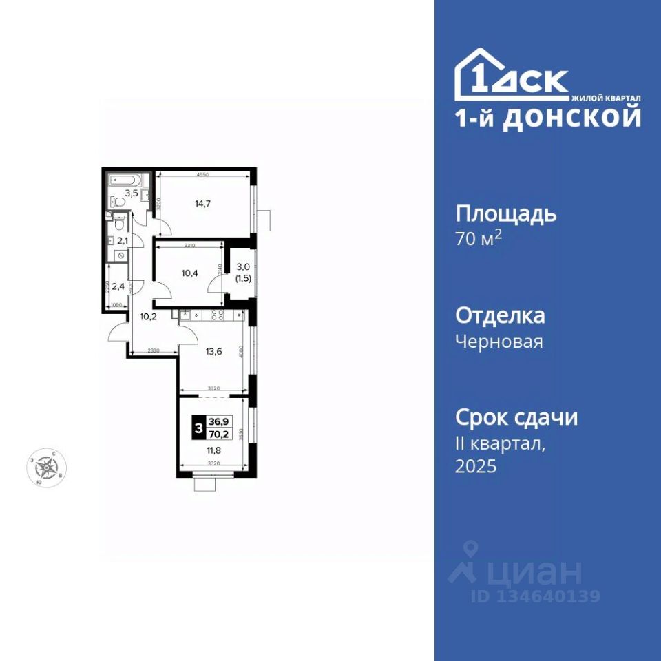 Продаётся 3-к квартира номер 380 общей площадью 70.2 кв.м. на 22-м этаже 24 этажного дома. Отделка Whitebox. Цена с учётом скидки!