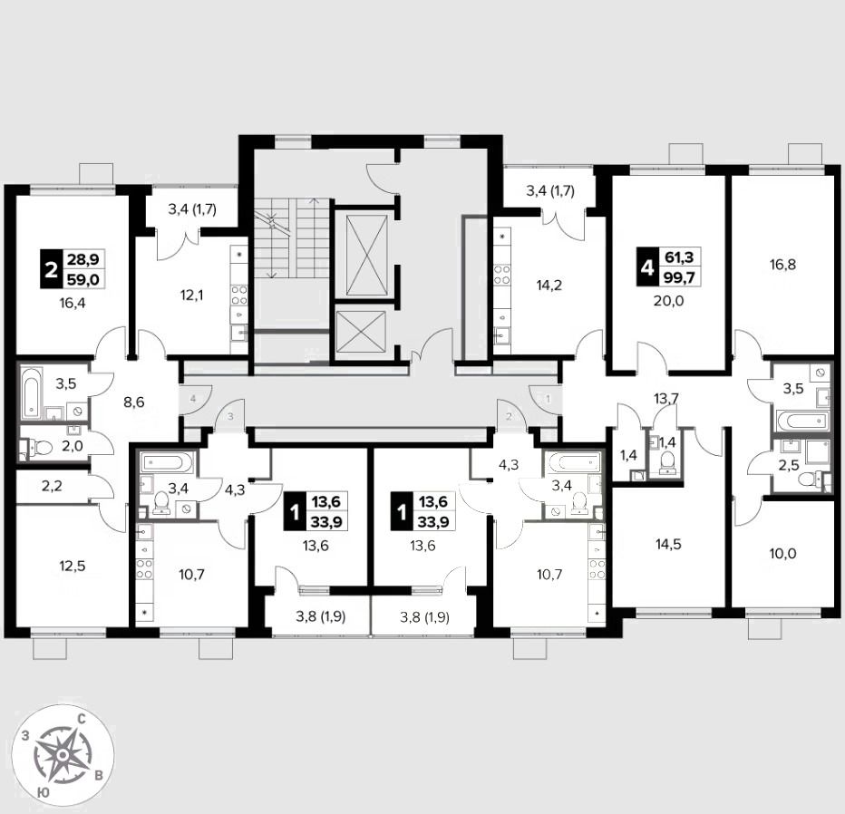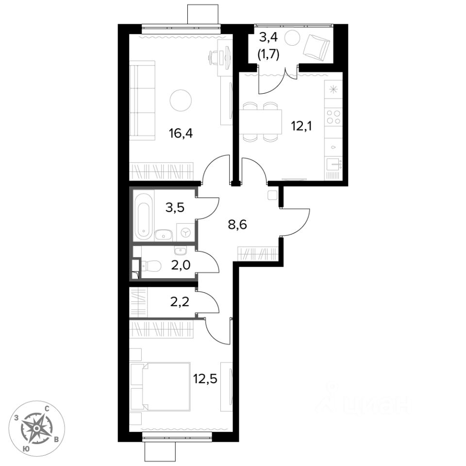 Продаётся 2-к квартира номер 399 общей площадью 59 кв.м. на 3-м этаже 20 этажного дома. Отделка Whitebox. Цена с учётом скидки!