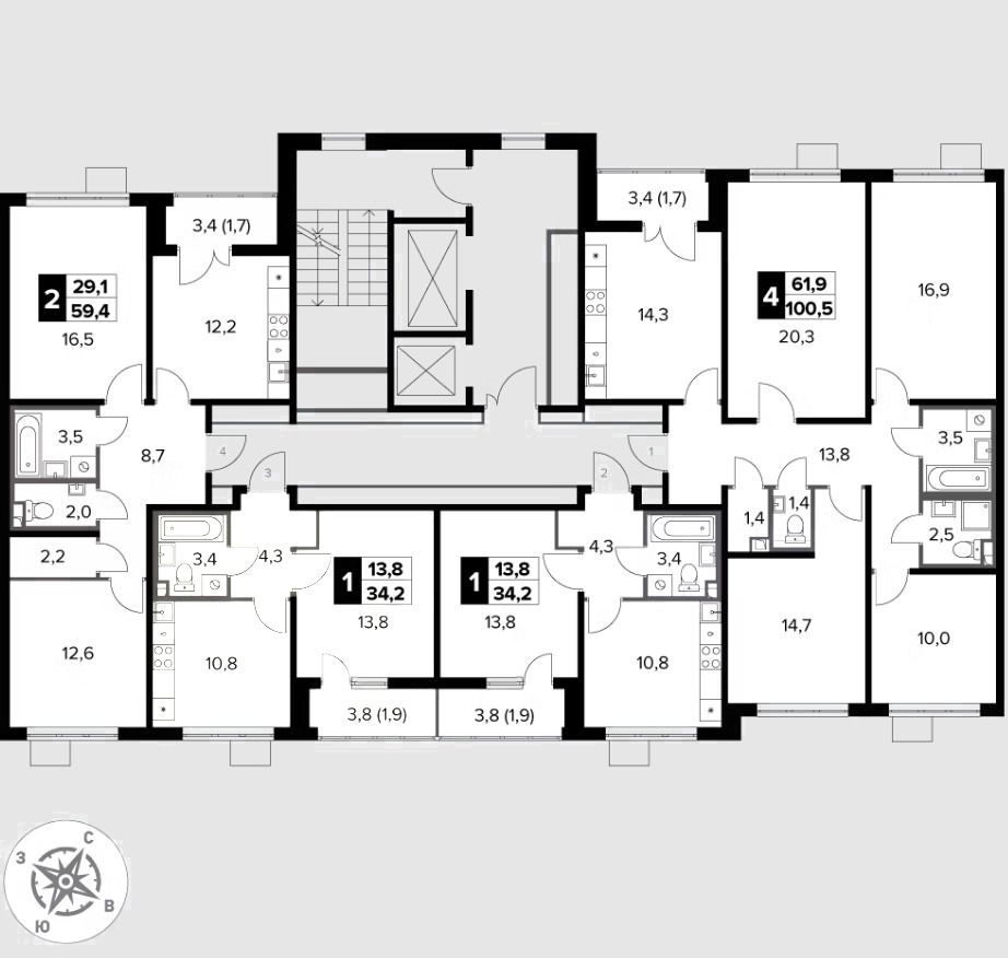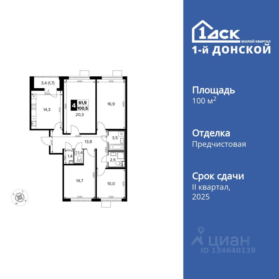Продаётся 4-к квартира номер 424 общей площадью 100.5 кв.м. на 10-м этаже 20 этажного дома. Отделка Whitebox. Цена с учётом скидки!