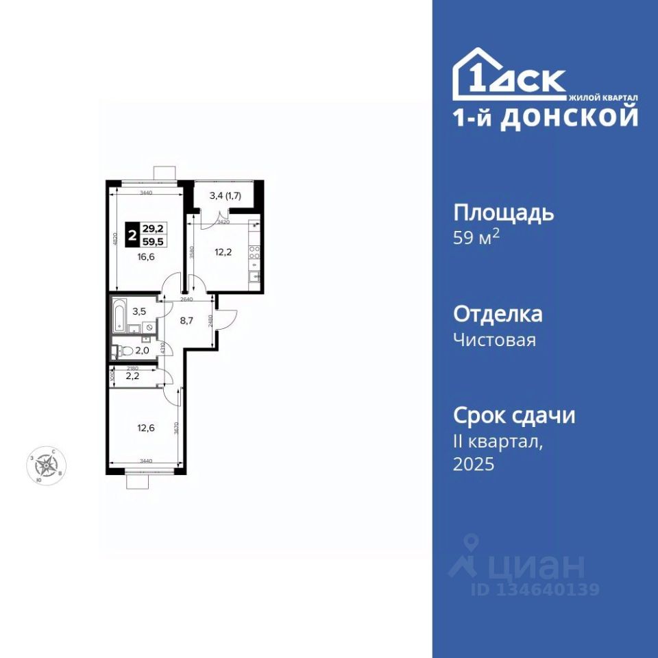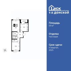 Продаётся 2-к квартира номер 487 общей площадью 59.5 кв.м. на 6-м этаже 12 этажного здания. Чистовая отделка. Цена с учётом скидки.